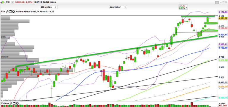 Sinon, au niveau du CAC 40, on a atteint les 6100 points. ras c’est haussier. 5950 reste le pivot, au-dessus on reste positif. On continue de faire la rotation même si je trouve qu’on commence à arriver dans le dur pour certaines valeurs mais il y’a encore de la marge pour d’autres cycliques. du coup on peut avoir la rotation dans la rotation, quelques foncières sont d’ailleurs dans des congestions intéressantes.