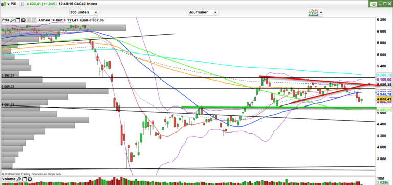 Au niveau du cac 40, on s’offre un rebond sur la base des 4760 points; pour revenir chercher des niveaux de résistances à 4840 points. On parlera de rebond technique à ce stade qui ne remet pas en cause la dégradation de l’indice parisien tant qu’on reste sous les 4900 points. Au-dessus des 4900 points, on pourrait certainement tenter une relance avec les valeurs cycliques, le marché voudra certainement jouer l’espoir de reprise. Mais c’est encore la dégradation et la crainte d’une seconde vague qu’il joue encore pour l’heure.