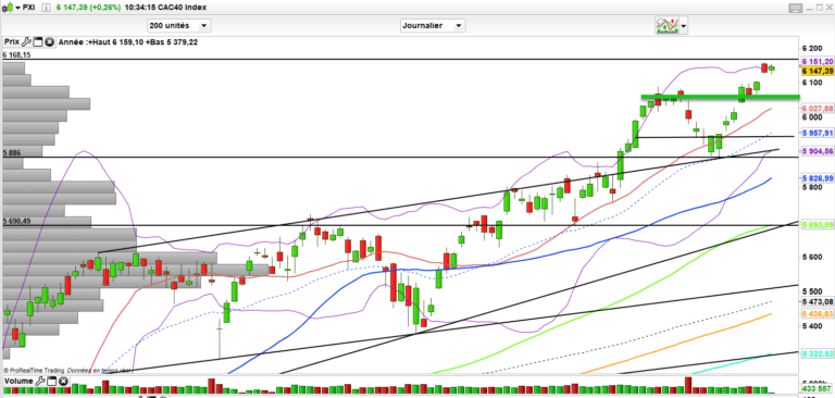 Niveau CAC 40 ras on flirte avec les plus hauts de 2007. Au-dessus des 6066 (ce n’est pas un hasard) à court terme, ras.