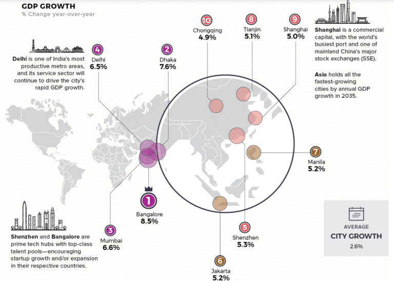 Visual capitalist propose une infographie sur les 10 plus grandes villes du monde d’ici à 2035.