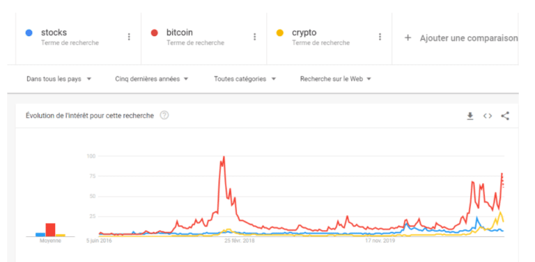 Grâce à google trends je vous propose de commenter un graphique et d’oublier le bitcoin