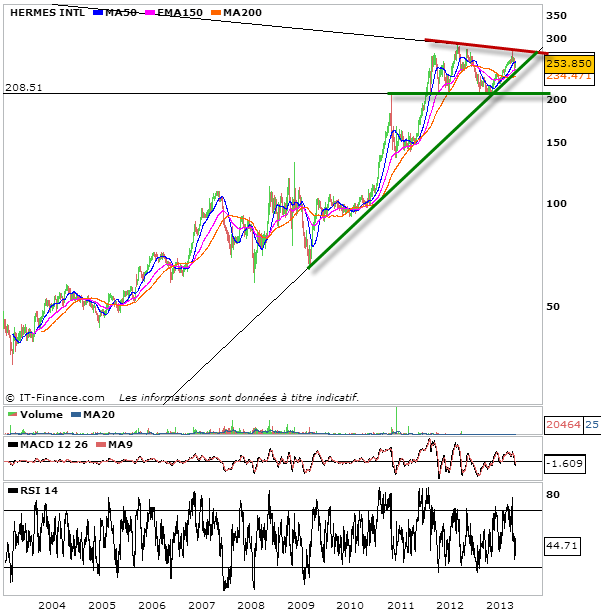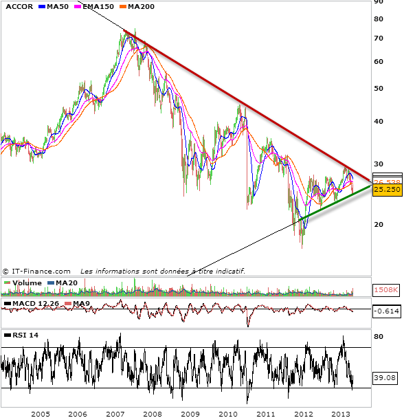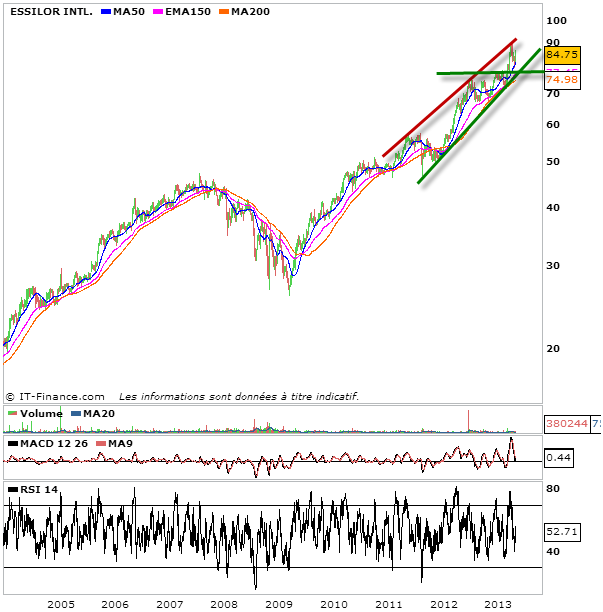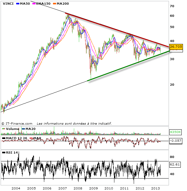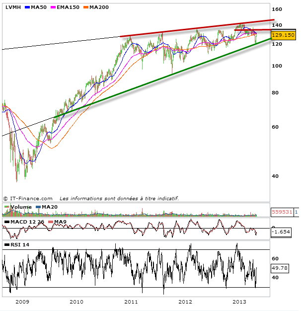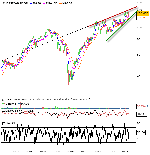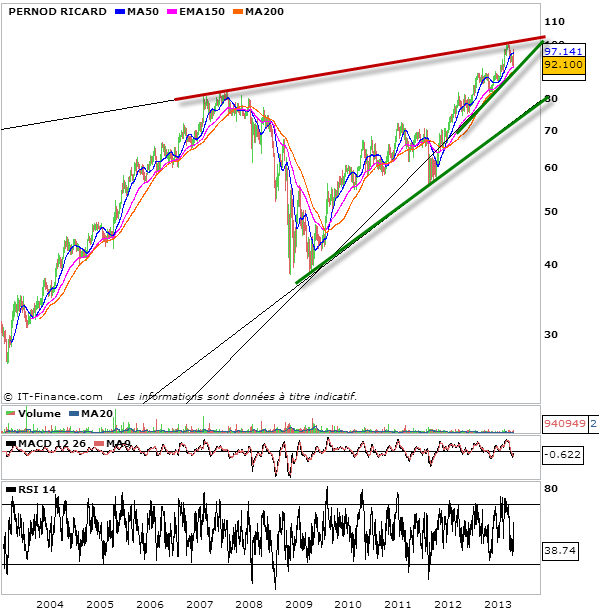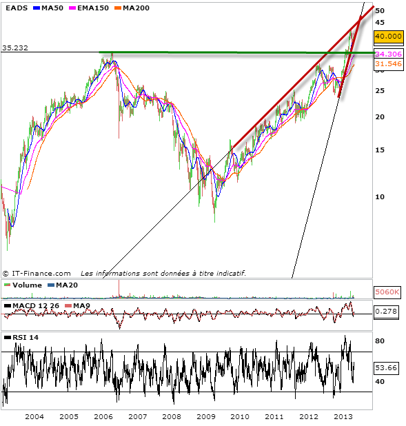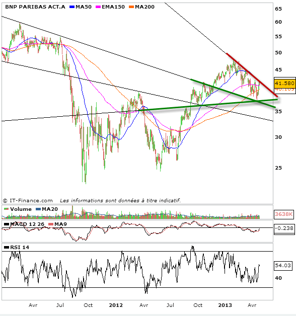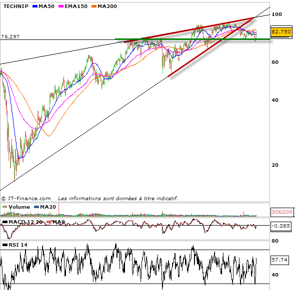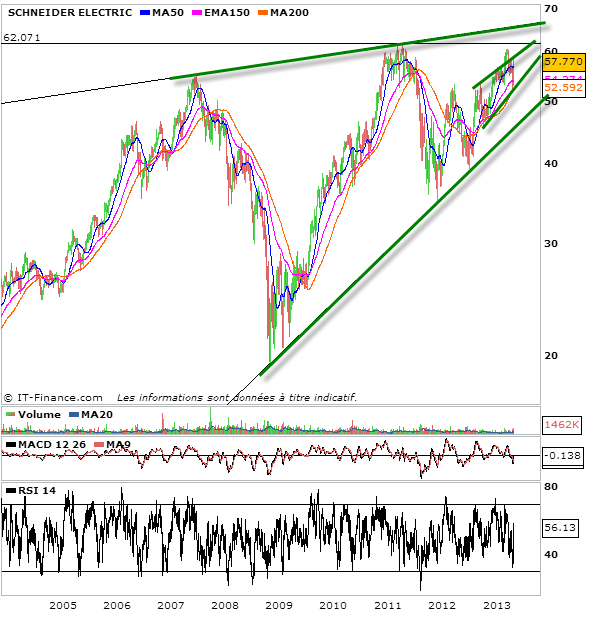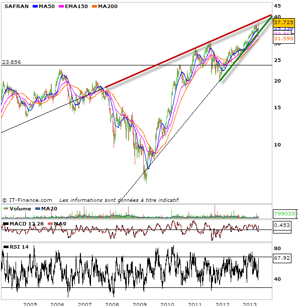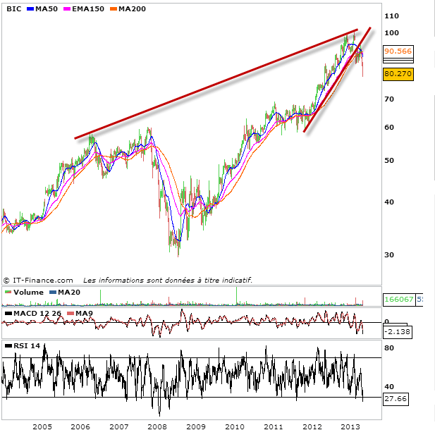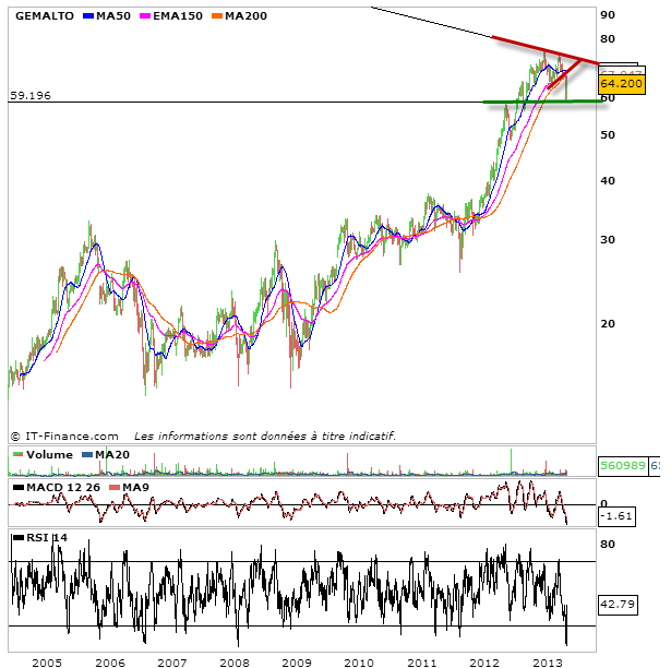 Il me semble donc, que beaucoup de valeur du cac 40 sont entrain d’atteindre leurs plus hauts et de former des figures de fin de hausse. Certaines, comme Bic, Gemalto ou Technip ont déjà cassé ces figures et ont commencé leur baisse.