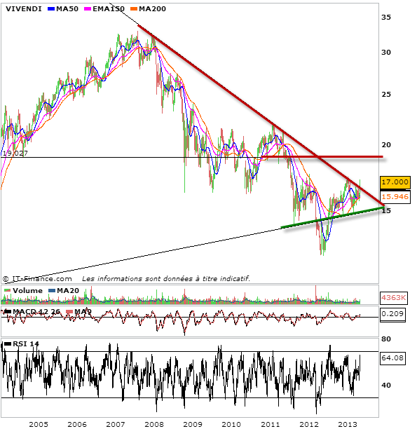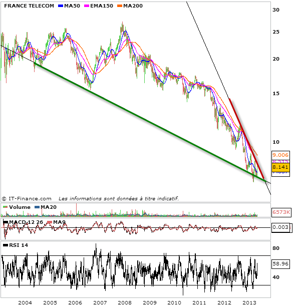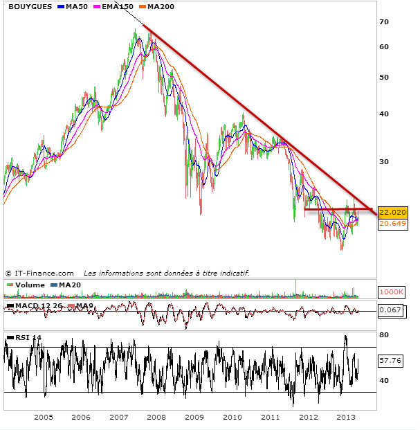 D’autres valeurs comme les Télécom, sont entrain de remonter la pente: Bouygues, Vivendi et France Télécom. Je pense que le marché arbitrera bientôt faire ces valeurs qui sont entrain de déclencher des signaux d’achat alors que le reste de la cote semble, elle achever sa tendance haussière et commencer à stagner. Je pense donc qu’une news niveau des télécoms devrait paraître prochainement, ce qui fera monter l’ensemble du secteur.