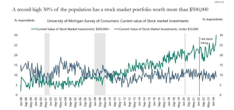 Aux US, 30% de la population à plus de 500 000 dollars en bourse. Ne leur demandez pas s’ils pensent être riches.