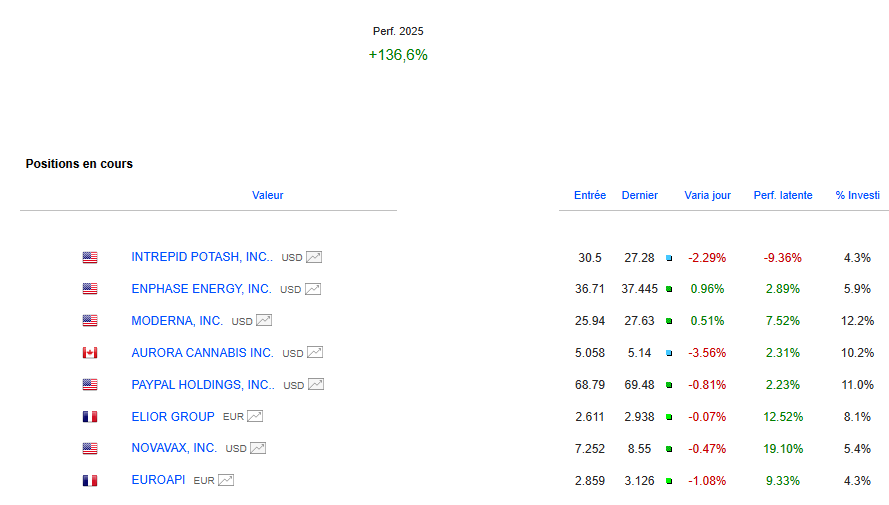 ras, je ne fais pas grand chose si ce n’est suivre ce que j’ai et être 40% liquide sur l’ensemble des portefeuilles. Ce n’est pas qu’il n’y a plus d’opportunités. Au contraire. C’est qu’après cette année folle je trouve que j’ai plus de mal à prendre des risques.