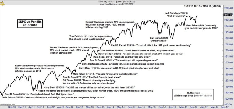 Voici un graphique qui se propose de reprendre les plus grandes annonces de gourous au fur et à mesure de la hausse du marché…