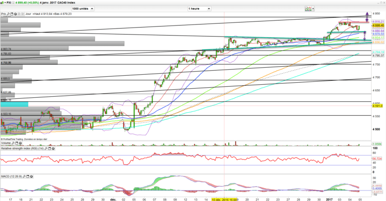 Donc au-dessus des 4840-4860 points, on reste haussier. bien entendu, les opportunités commencent à se faire rares. Mais en aucun cas il faut anticiper la correction et plutôt la laisser venir.