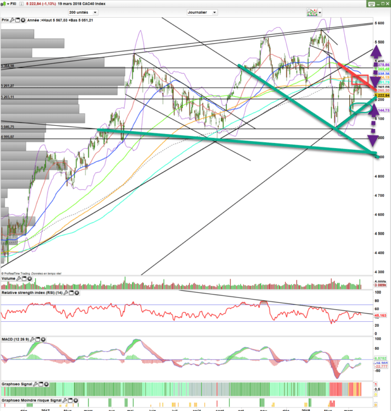 C’est une figure de neutralité. La sortie haussière relance la hausse, une sortie baissière, relance une panique baissière avec pour objectif cette fois-ci les 4930-4940 points que j’avais pu déjà évoquer dans de précédentes analyses.
