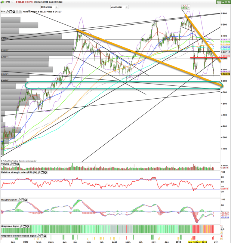 Prévision bourse: Analyse technique CAC 40 tendance 27 mars 2018