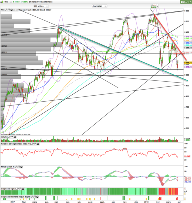 Le zig zag peut encore continuer. Et il faut faire attention, car il pourra lancer des signaux multiples. Après la baisse puis ce rebond, acheteurs et vendeurs vont maintenant tenter de trouver le point d’équilibre neutre et former leurs tranchées. 5125-5150 pour les vendeurs et 5100-5090 pour les acheteurs.