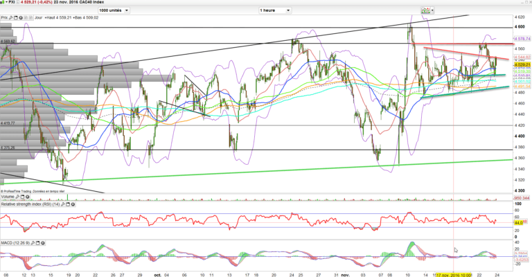 Quelques lecteurs m’en ont parlé mais c’est vrai que la presse en parle peu. Mais il se pourrait bien que le marché attende le référendum italien du 4 décembre. Les bancaires qui tiennent la tendance à bout de bras seront les premières en lignes de mire. Sans nul doute c’est cela qu’il faudra suivre ces prochains jours jusqu’au scrutin pour se forger une idée et certainement une vraie tendance.