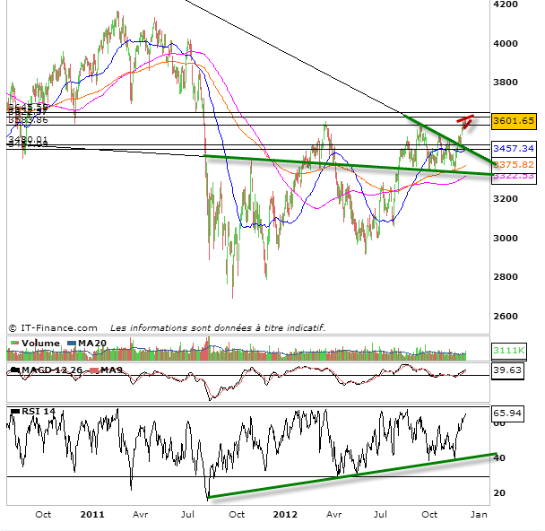 Sauf mauvaise nouvelle donc, j’attends que la tendance haussière du cac 40 se poursuive au premier trimestre 2013 avec un objectif haussier à 3740 points.