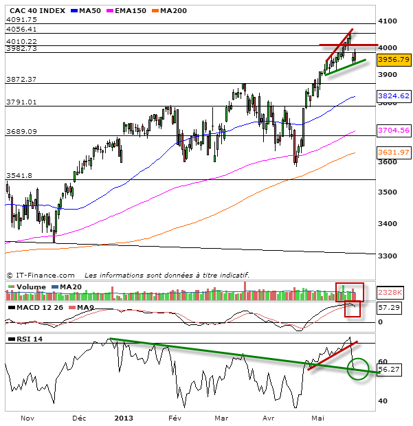 Mon point pivot reste 3993-4007. En-dessous, toute hausse ne sera que rebond technique, dans un marché en consolidation baissière certainement vers 3875-3890 points