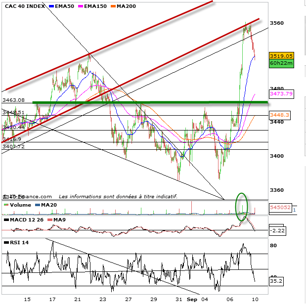 Au-dessus des 3463 points à moins pour être très court terme il est inutile de prendre une position de vente à découvert. ce n’est aps encore le bon timing pour cela.