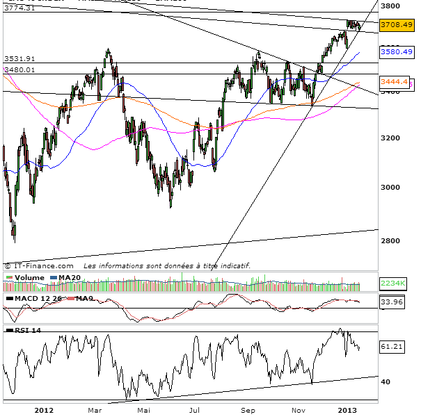 Les baissiers eux, ne prendraient définitivement l’avantage que sous 3680-3670 points pour un objectif de fermeture du gap des 3630 points.