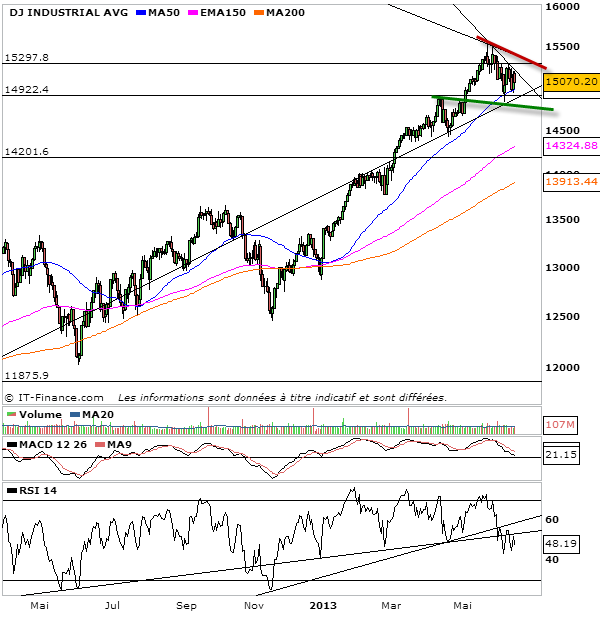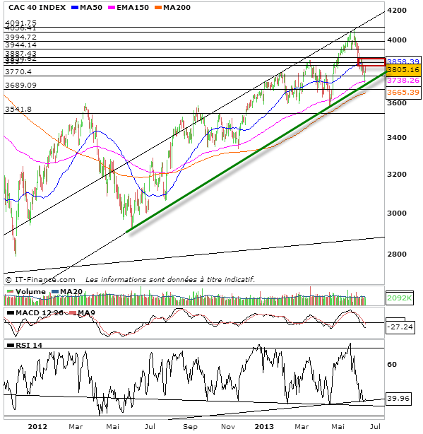 Sous 3775 et à fortiori sous 3730, un sérieux signal vendeur serait envoyé avec la cassure de la tendance haussière et un objectif à 3540 points avec 3600 et 3680 en niveau de support intermédiaires.
