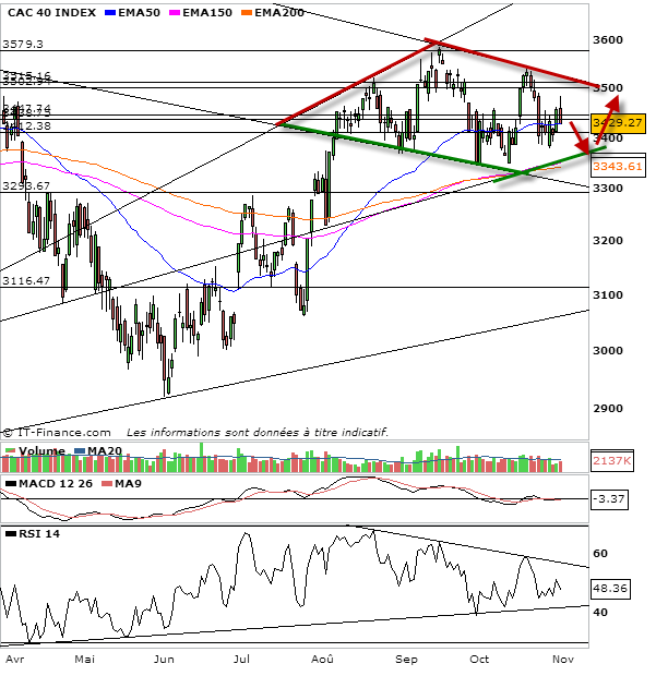 A ce soir et en dessous de 3438 points, la situation se dégrade à court terme.