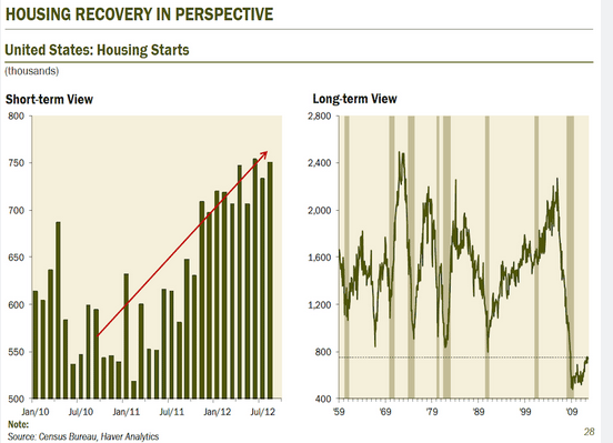 Le deuxième graphique met en perspective la reprise de l’immobilier. Cette reprise est « pathétique »…