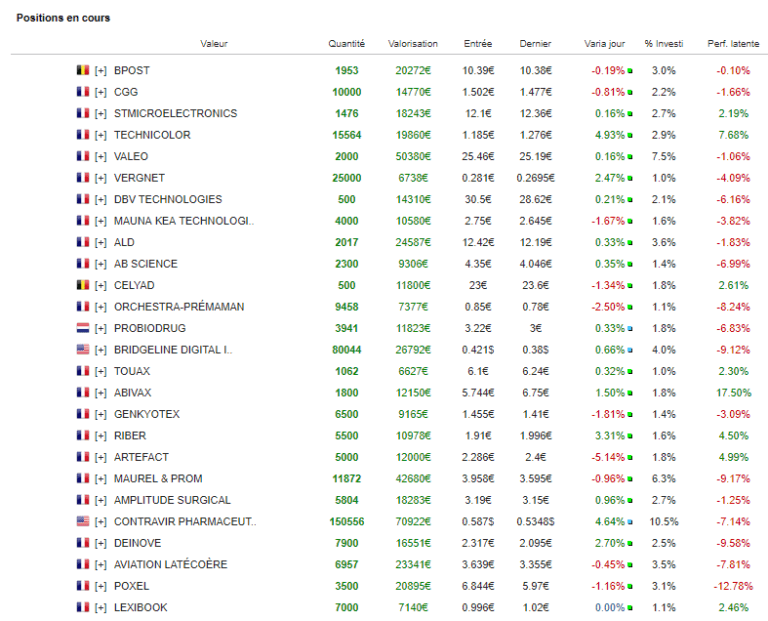 J’ai par contre soldé Supersonic qui a refusée son rebond et ne confirme pas. Pas de patience avec ces petits valeurs dont les carnets d’ordres peuvent subitement se vider au retour de la peur. J’ai trop tardé à solder bien des valeurs comme cela ces dernières semaines et encore récemment.