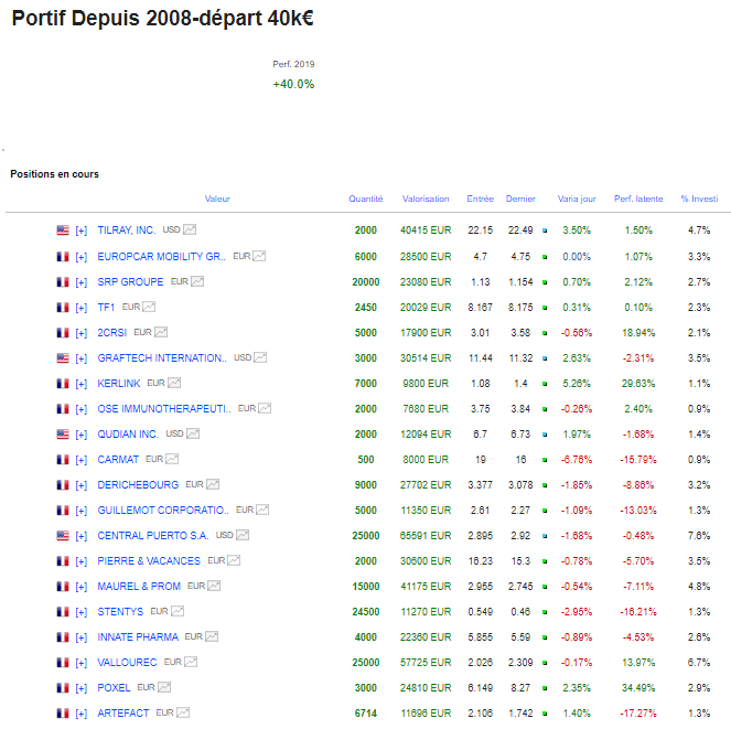 Je laisse donc passer le weekend et patiente en conservant du cash pour voir venir. Actuellement 50% sur le portefeuille long terme et 40% sur le portefeuille court terme.