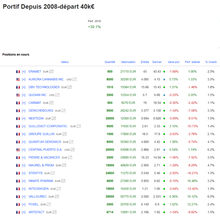 Je regarde Cgg aussi mais cela m’interesse autour des 1,8. Puis des petits titres aussi dont l’illiquidité ramène les prix rapidement sur des niveaux intéressants. Reworld media pour en citer un mais il y’en a d’autres que je peux plus en détail analyser au sein de l’académie des Graphs.
