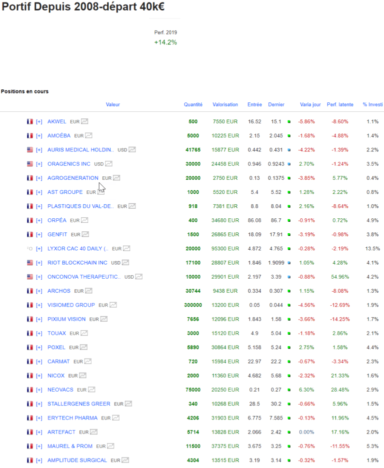 Sinon, donc vente de vallourec, de valeo, de solocal et de SRP. Une accumulation de Orpea. Et achat première ligne anticipée et sur akwel hier (mauvais timing). Beaucoup de petites lignes où j’ai des plans d’accumulation sur la consolidation justement. Les constructions de vallourec et valeo continuent de m’intéresser. Je suis donc avec intérêt pour me replacer. J’essayes de rester réactif