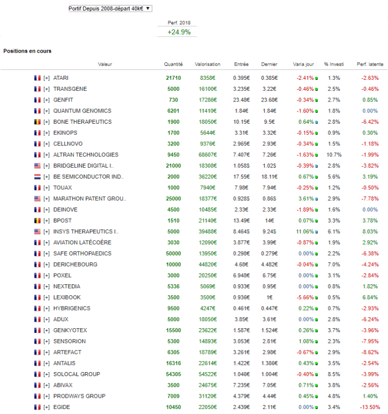 Dans ce contexte, pas grand chose de nouveau. Si ce n’est que j’ai re-accumulé Derichebourg. Au final ce que j’avais vendu hier car le titre revient dans une zone potentielle, où enfin elle pourrait donner un coup de collier intéressant…ou pas.
