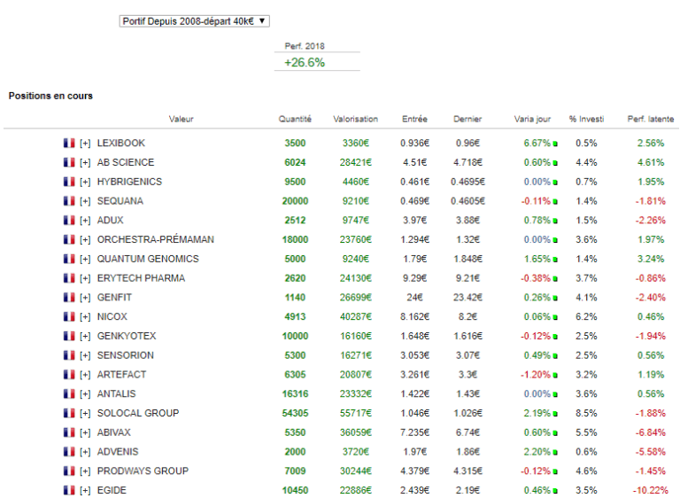 Dans ces conditions, je reste donc en place à l’achat. Mais évite de rajouter trop au pot. J’observe beaucoup. Beaucoup de dossiers redeviennent intéressants et je pense que leur consolidation sera à mettre à profit. Beaucoup de grosses caps également redeviennent intéressantes pour des profils plus long terme. C’est une des raisons qui fait également, que si on peut être prudent actuellement sur les marchés, on se doit néanmoins de ne pas broyer du noir en voyant tous les articles qui nous promettent le Krach. Ils ne sont que des copier coller avec les mêmes arguments qu’il y 6 mois, 1an, 2ans, 3ans et plus. Pour le moment, ce que je vois du marché, c’est qu’il digère mais ne rompt pas. En cela beaucoup de dossiers reviennent à des niveaux de valorisation intéressants pour l’investisseur comme j’ai pu déjà en témoigner ces dernières séances.