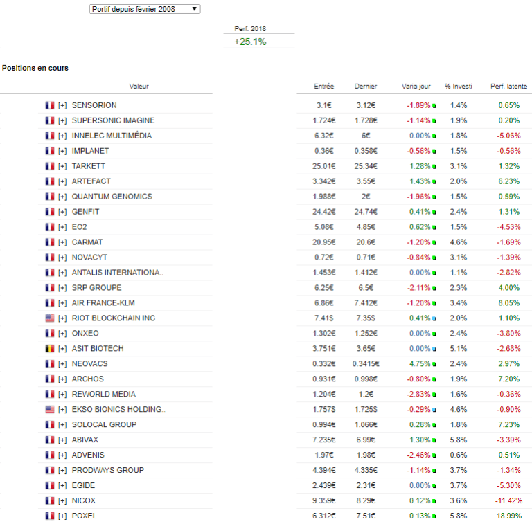 Cela demande un suivi plus important mais tant que le marché ne panique pas, cela peut payer plus qu’une stratégie d’attente ou de protection. Ce n’est que si le CAC 40 rentre en mode panique avec de la volatilité que là les petites valeurs souffriront et moi avec. j’aurai alors une mauvaise heure à passer pour tenter de liquider toutes ces lignes.