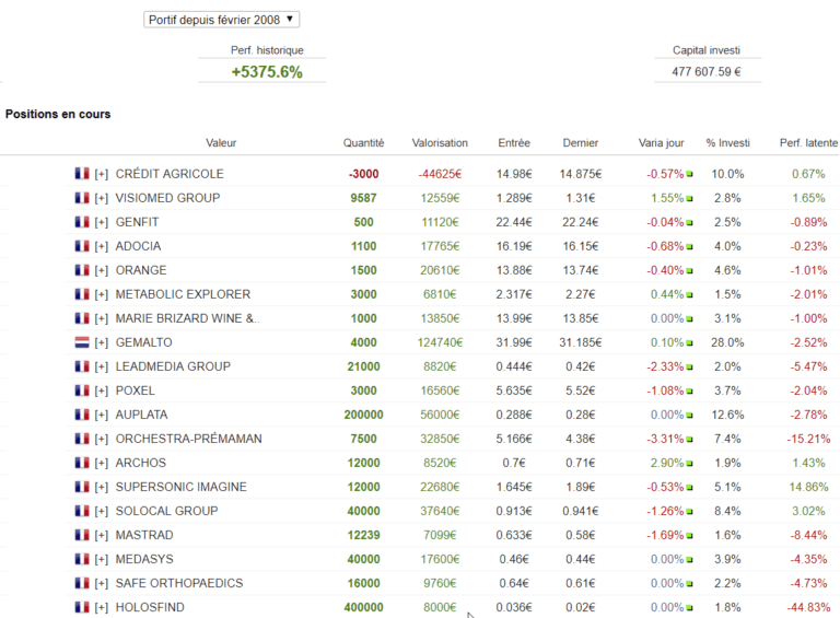 Déception sur Carrefour que j’ai vendu par crainte des annonces d’hier soir, finalement ces annonces sont appréciées par le marché. Mais je ne regrette pas cette décision, il y avait plus à perdre qu’a gagner en cas de réaction négative du titre, c’était trop risqué et j’ai décidé que le jeu n’en valait pas la chandelle.