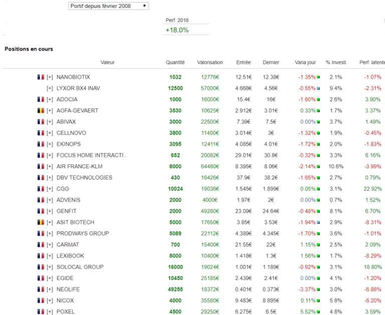 En déplacement, je suis mon portefeuille de loin. Pas franchement la meilleure semaine pour cela puisque c’est chargé au niveau des résultats d’entreprises. Je reste donc vigilant et n’hésiterai pas à prendre des profits et reprendre des liquidités pour limiter mon exposition.