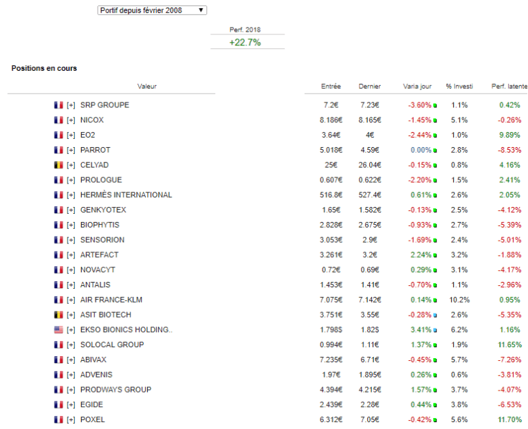 Au niveau des achats, je regarde pour accumuler Celyad. Et j’ai commencé à prendre une ligne sur SRP sur les 7,20. J’accumulerai en fonction.
