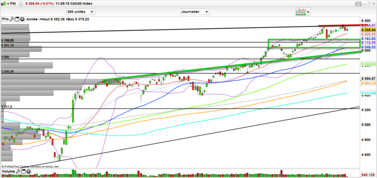 Sinon niveau cac 40, rien de plus que fin de semaine dernière. On a entamé à court terme une reprise de souffle sous les 6310 points. La zone pivot support reste pour moi sur les 6220-6230 points. Au-dessus c’est haussier mais en mode reprise de souffle. En dessous des 6220 on rentrerait en consolidation avec la zone des 6150 en prochain support.