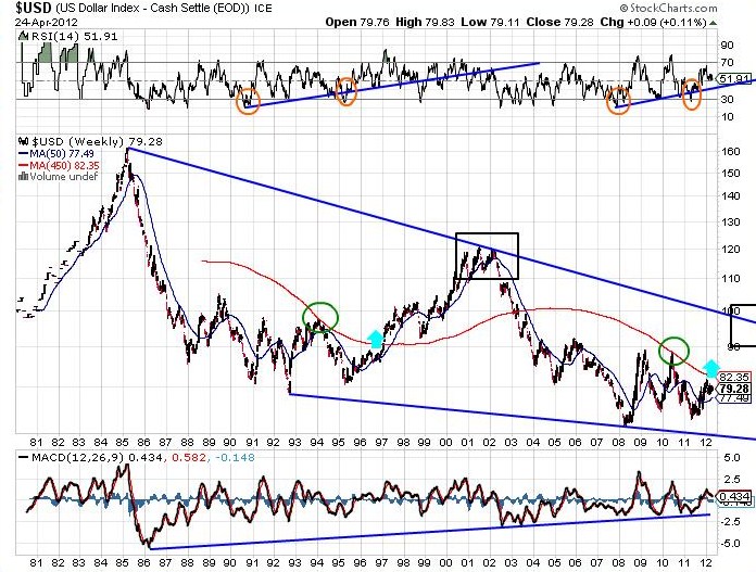 Ensuite ce deuxième graphe ci dessous, où l’on voit un énorme trend haussier sur le MACD et le rôle de la MA 450… Sa cassure à la hausse sera          le signe majeur de retournement de la tendance.