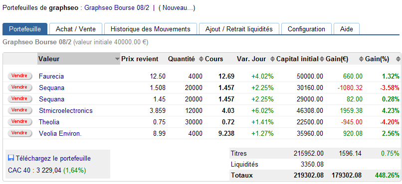 Avec la cassure des 3207 points sur le cac 40 on a vu une tendance haussière de court terme se valider de manière plus sereine que ces deux derniers jours, ce qui permet a beaucoup de valeurs de rebondir. On arrive sur les 3230 points, niveau de résistance qui sépare la tendance long terme d’être baissière ou haussière. Si l’on passe ces 3230 points, l’été sera chaud, mais à contrario de l’année dernière il sera dans le sens vert des acheteurs. En début de journée, j’avais arbitrer une mini ligne de Veolia et d’AXa ainsi qu’une ligne de Sequana ( trop d’exposition et pas de volumes) pour une ligne de ST micro electronics. Je vais faire un article pourquoi j’ai acheté St micro electronics prochainement. Voilà donc la watch list que je conserve à ce soir, on verra ce que donne le test des 3230 points.