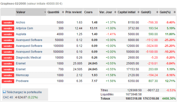 Watch list: portefeuille graphseo bourse au 23 février 2016