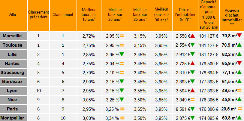 Taux crédit immobilier par ville en France