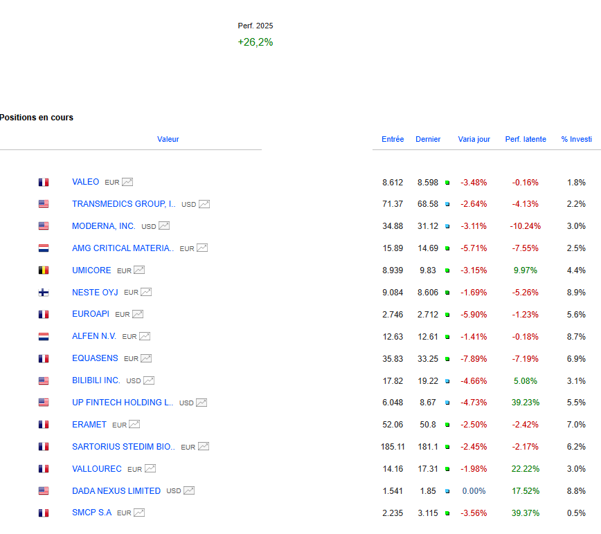 j’avais bien réussi sur la première salve de baisse, clairement moins depuis jeudi dernier. Je reste dans les clous de mes plans qui étaient larges, c’est le jeu.