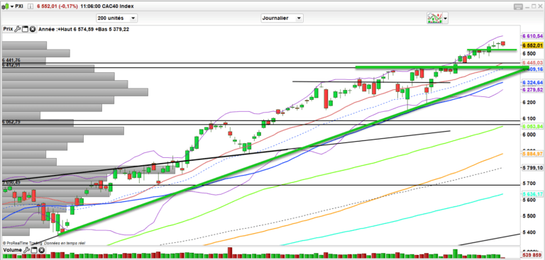 A ce stade c’est haussier mais le marché est méfiant. c’est tout ce que l’on peut dire et on engagera une consolidation sous 6520. Sinon rompre les 6580 pourra relancer la marche en avant vers 6666 que je continue à viser pour des raisons purement technique vous en conviendrez.