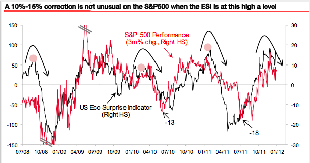 very low. This time, the ESI has moved back up to an all-time high, indicating that the consensus on the economy may have become too optimistic and thus possibly putting risk assets in danger in the near future.”