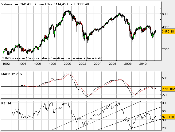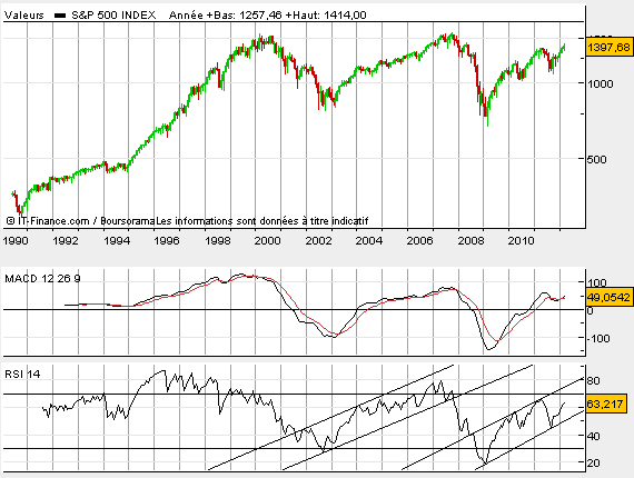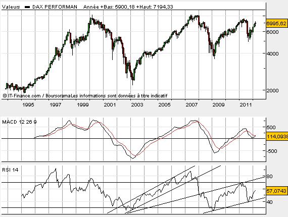 Du point de vue, du RSI, les indices semblent avoir encore potentiellement une belle marge à la hausse, tant sur le plan de l’amplitude que sur le plan de la durée. Leur MACD respectif sont quand à eux, tous dans une phase de reprise haussière. Mon commentaire se veut plus être une constatation qu’une affirmation, vos remarques si vous en avez seront vraiment les biens venues^^. Bon week-end à tous.