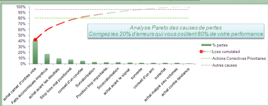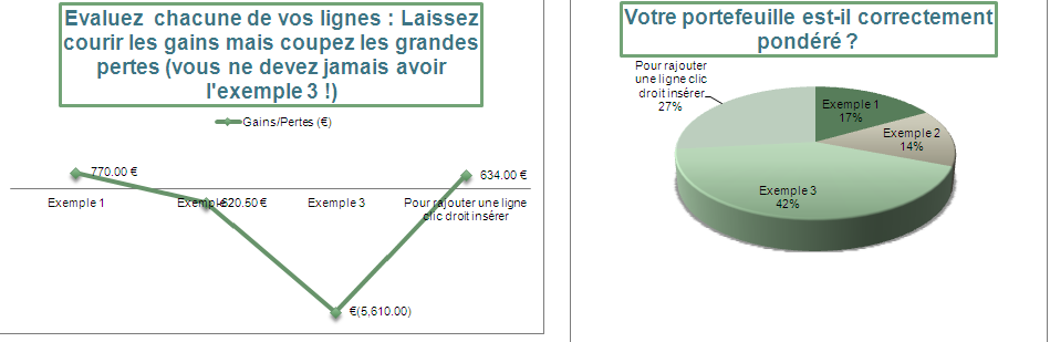 Dernièrement j’avais publié un article sur la nécessité pour un investisseur de tenir à jour un journal de trading. J’ai mis du temps mais j’ai tenté d’en concevoir un alliant à la fois le travail de récupération des données mais également une analyse de vos décisions afin de vous faire prendre conscience de vos erreurs répétitives qui font le plus de mal à vos performances boursières. Résultat, vous savez pourquoi vous perdez de l’argent, et vous prioriser vos points d’amélioration. Vous ne faîtes plus que de petites pertes qui sont compensées par vos petits gains et il vous reste enfin ces gros coups qui vous permettent de vous offrir quelques extras !