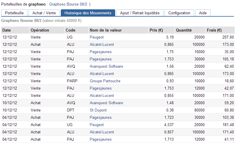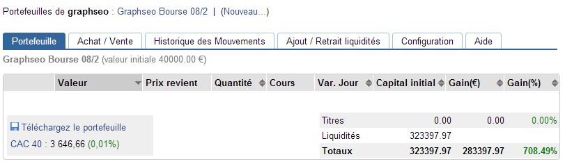 J’ai tout vendu aujourd’hui. Pas que la tendance soit devenue baissière, non, bien au contraire. En effet les 3600 points ne furent pas percés, loin de là. La tendance haussière perdure donc et ce au-dessus des 3620 points qui deviennent pivot. Les opportunités à la hausse commencent à manquer. Et Alcatel comme Pages jaunes ont aujourd’hui faiblis ce qui m’a poussé à vendre. J’ai également vendu Peugeot pour sécuriser les gains et permettre à la watch list de s’offrir un cadeau de noël avant l’heure en passant les 700% de performance. J’ai soldé Avanquest sur un ordre de vente limite qui fut atteint aujourd’hui. Vendu également partouche. Les positions étaient trop petites et ces valeurs n’ont pas assez de volumes pour que je puisse investir davantage. je préfère me concentrer sur moins de titres, du coup j’ai soldé.