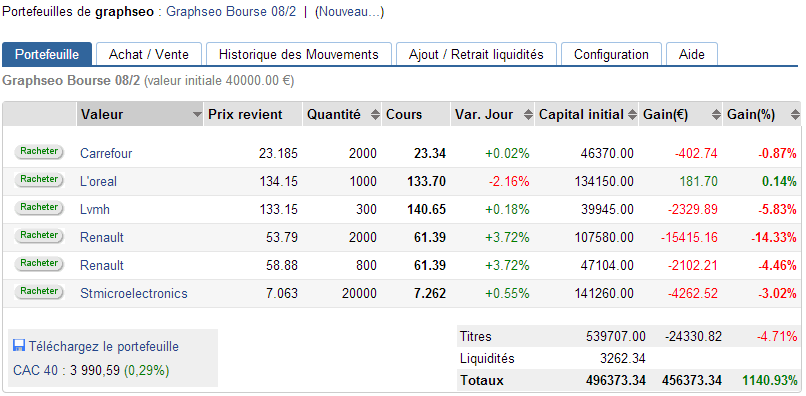L’impatience m’aura beaucoup coûté cette semaine. A anticiper, on prend toujours plus de risques, mais à être à contre tendance dans un tel marché surtout sur Renault, c’était là une erreur que j’aurai du éviter. Comme quoi, même après une série d’excellents trades on finit toujours par revenir à ses anciens travers, à rentrer en contre tendance, à ne pas suivre sa stratégie, à ne pas savoir couper et finalement à se dire que bon de toute façon on est en swing…Bullshit! Je n’aurai jamais du rentrer en vad alors qu’il n’y avait aucun signal, et même si je l’avais fait par volonté spéculative j’aurai du savoir couper rapidement. Cette semaine j’ai donc été très mauvais. L’occasion de se remettre en question. Cela fait toujours du bien, surtout après une grosse série de gains. Et l’occasion encore, si jamais j’en doutais encore, qu’appliquer sa stratégie et ne pas en dévier reste toujours le meilleur moyen de s’en sortir plus que bien en bourse. Une nouvelle fois, ne pas appliquer la stratégie du moindre risque m’aura coûté. Une erreur que je fais toujours après une succession de très bons gains. Une leçon qui devrait finir par rentrer à force…