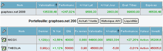 Performance globale par année de la watch list graphseo bourse