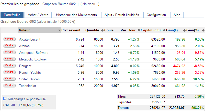 Pour le reste comme je manque de temps, je n’ai pas de quoi arbitrer des positions vers des actions plus rentables, donc je conserve.