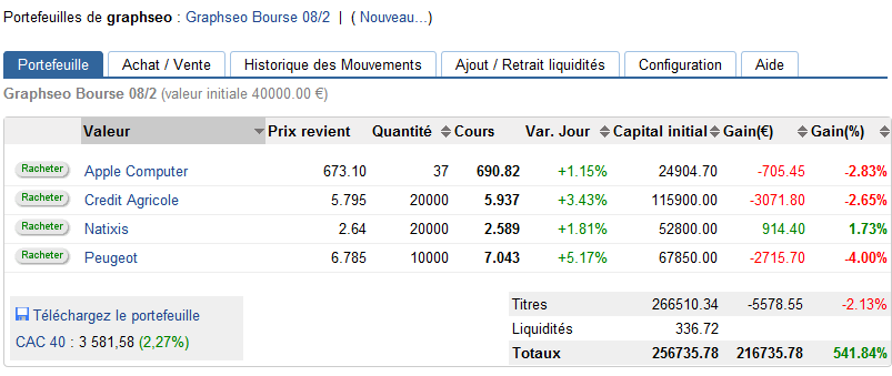J’ai été très surpris par l’annonce du quantitative easing annoncé par la FED. Même si à tête reposé je ferais paraître un article ce weekend pour vous dire que ce QE 3 est loin d’être aussi positif que ce que l’on pense. J’ai donc un peu souffert, mais je n’ai pas flanché, j’ai conservé un portefeuille résolument à la vente. J’ai notamment vendu à  découvert Apple. Si pour le moment le portefeuille est contre marché, je prends le risque de mes convictions qu’une consolidation est nécessaire. L’annonce de la FED est pour moi une cartouche de moins pour les acheteurs, et surtout cette cartouche est très faible en puissance, il faut dire que la cartouche avait été anticipée et que l’on avait déjà bien profité de l’été. Alors que ce matin encore j’ai entendu certains analyste dire qu’il était enfin temps pour les petits porteurs de revenir en bourse, que la crise est finie, je ne saurais être qu’encore plus prudent.