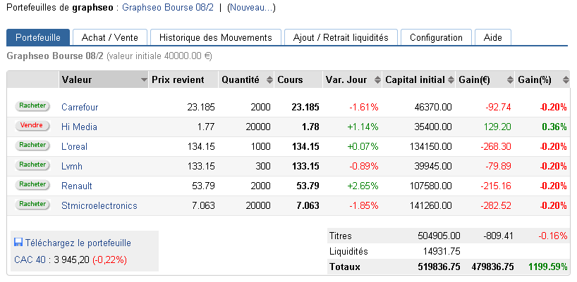 On aura donc pu déorger à la loi du sell in may and go away grâce à 7 actions que j’avais pu vous proposer et donc il ne manque plus aujourd’hui que Hi-media pou faire de ces analyses des réussites en terme de trades. Mis à part pour Hi media où j’ai pu passer à l’achat ce matin, j’ai attendu la clôture et donc le volume et la liquidité pour rentrer en vente à découvert sur des valeurs majeures du cac 40, dans une perspective de swing trading que j’estime à 2 voir 3 semaines. Je reviens de déplacement, donc le plus simple est souvent de rentrer sur des grandes capitalisations. En ayant un peu plus de temps, je vais étudier la cote pour voir s’il ne reste pas encore quelques anciens canards boiteux en mal d’un rebond. Mais là, à mon avis on arrive au bout du bout. Il est préférable soit de conserver ce que vous avez à l’achat avec un stop, soit d’être liquide. Où si vous tradez à court terme, pourquoi pas, comme moi, commencer à privilégier quelques trades à la baisse.